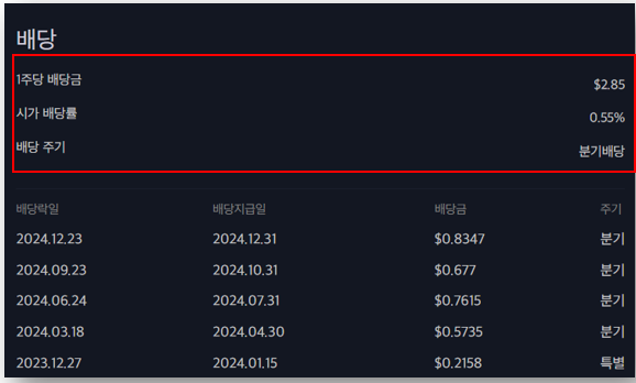 - 배당 주기: 분기별