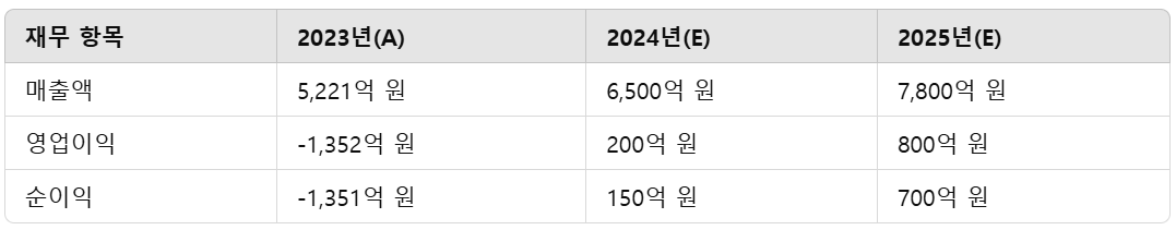 - 2024년부터 흑자 전환 예상.