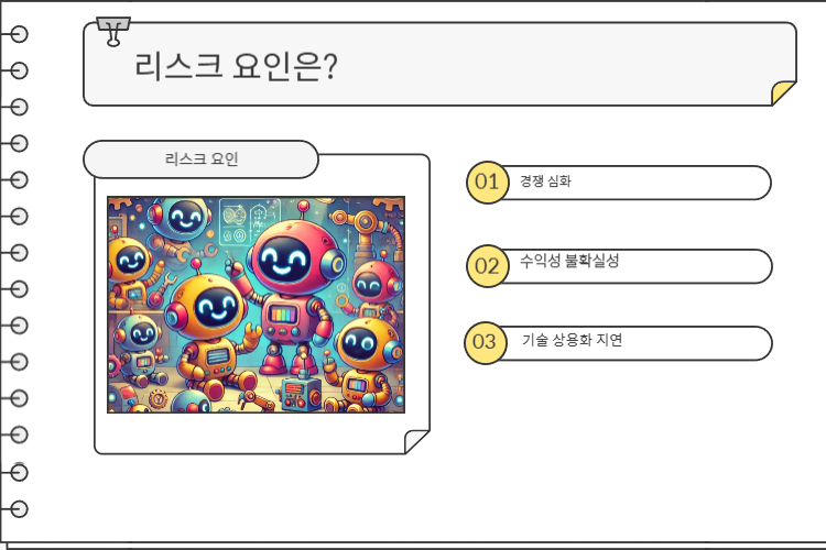 - 기술 상용화 지연: AI와 로봇 결합 기술 개발 과정에서의 불확실성.