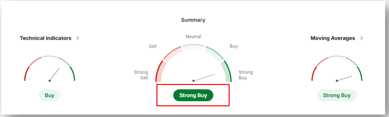 기술적 분석에 따르면, "강력 매수(Strong Buy)" 신호가 지속적으로 나타나고 있으며, 이동 평균선과 기술 지표가 상승세를 지지하고 있습니다.