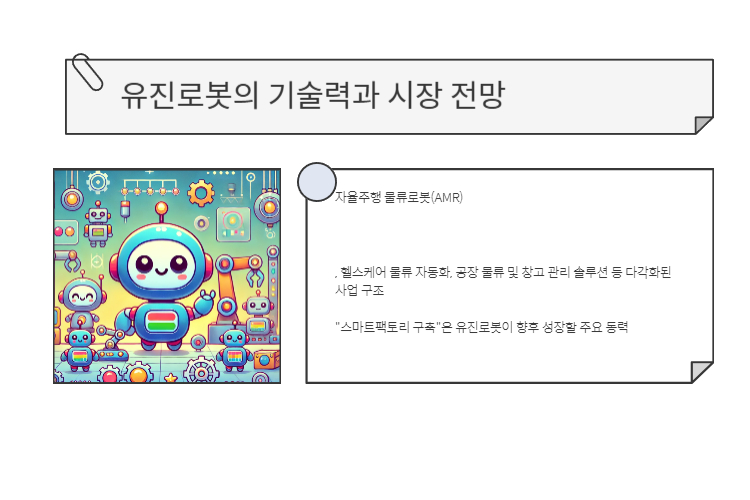이번 사업에서 유진로봇의 국제표준 안전인증(ISO 13482)을 받은 AMR은 기존 물류 시스템 대비 높은 유연성과 안전성을 제공해 향후 수요 확대가 기대됩니다.