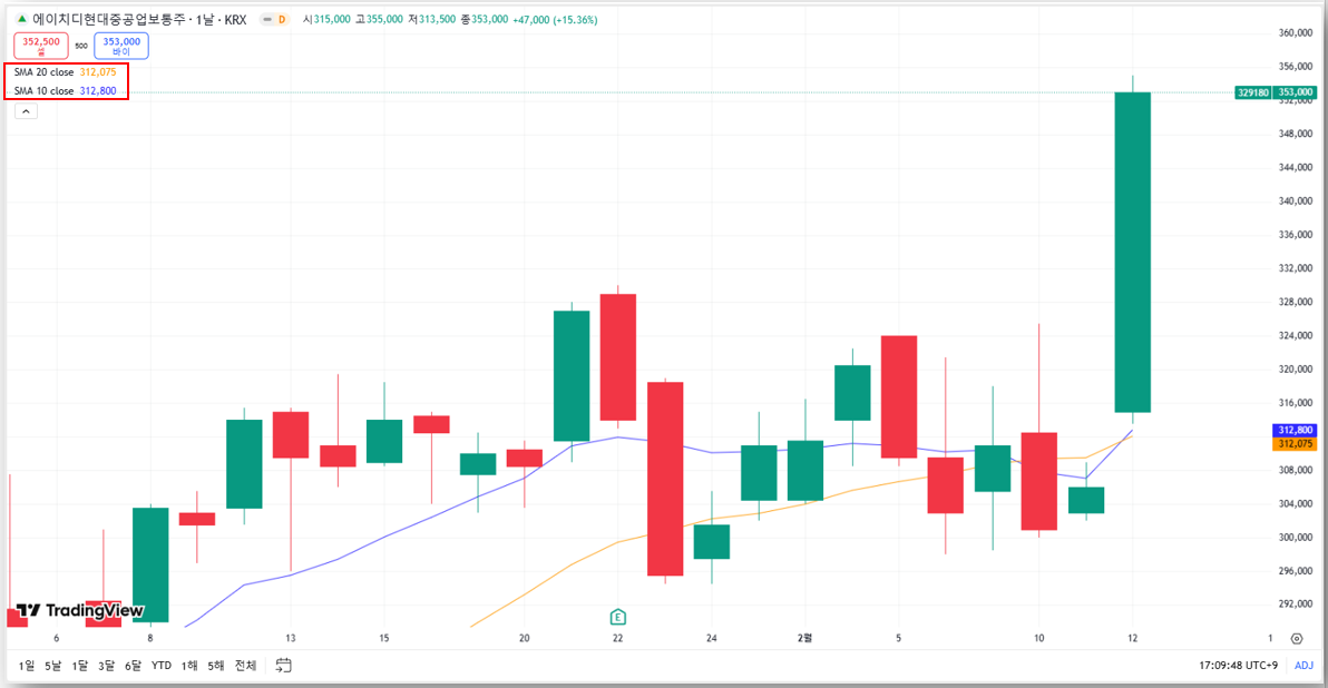 • 2월 12일: 장 초반부터 강세, 최고 353,000원(+15.36%) 기록
