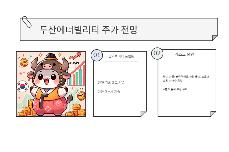 - SMR(소형모듈원전): 소형이지만 안정적이며 효율적인 원전 기술로, 두산에너빌리티가 글로벌 시장에서 경쟁력을 보유하고 있습니다.