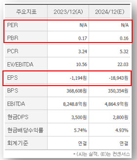 - EPS(주당순이익): -9,165원 (2024) → 실적 개선 시 플러스 전환 가능
