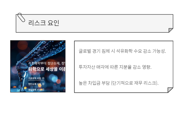 - 글로벌 경기 침체 시 석유화학 수요 감소 가능성.