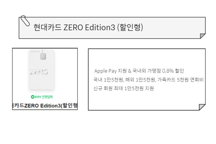 💡 Apple Pay를 사용하고, 모든 곳에서 할인받고 싶다면? 👉 현대카드 ZERO Edition3