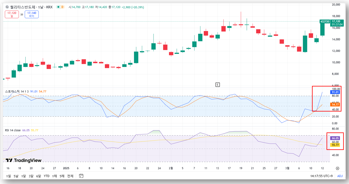 📌 스토캐스틱(14,3,3): 91.01 (과매수 구간 진입)