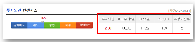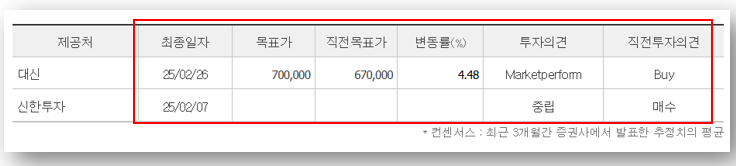 • 대신증권 목표주가: 700,000원 (25/02/26, Marketperform)