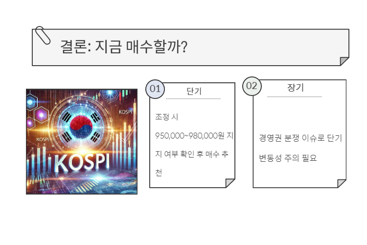 - 단기 조정 시 950,000원~980,000원 지지 여부 확인 후 매수