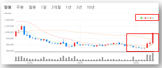 • 강한 상승세 지속! 1,100,000원 돌파 시 추가 상승 가능