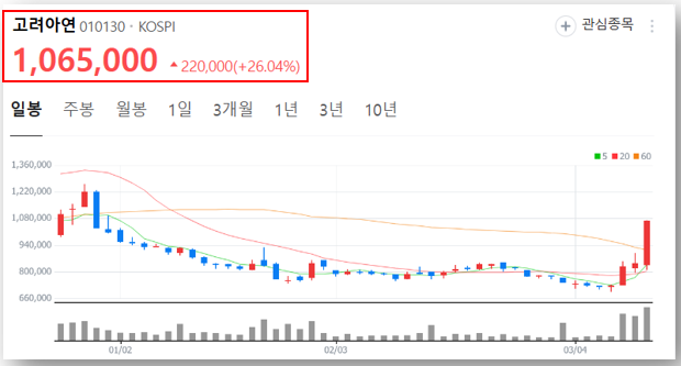 고려아연과 영풍 간 경영권 다툼이 주가에 큰 영향을 미치고 있습니다.