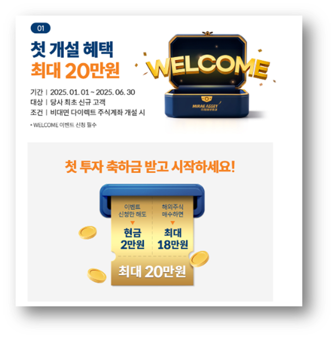 📌 대상: 미래에셋증권 최초 신규 고객 (비대면 계좌 개설 필수)