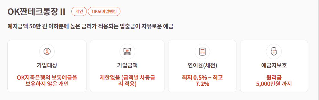 1️⃣ OK짠테크통장Ⅱ (최고 연 7.2%)