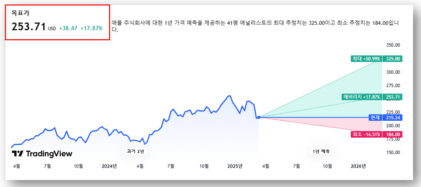 📌 애널리스트 평균 목표 주가: 253.71달러 (+17.87%)