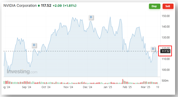 📌 2025년 3월 19일 기준 엔비디아 주가: