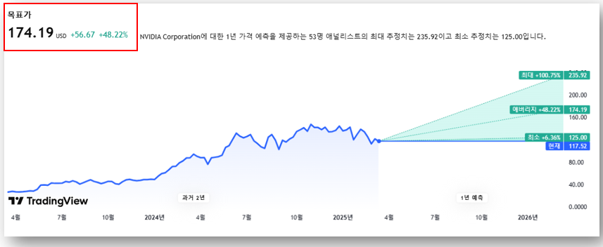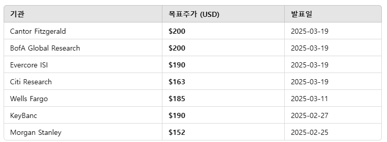 ✔️ 1년 목표주가 평균: $174.19 (+48.22%)