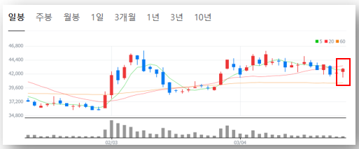 - 41,000원 부근 지지 확인 후 42,000~45,000원 단기 매매 전략
