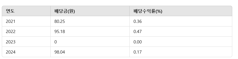 - 배당수익률: 0.17% (거의 무배당 수준)