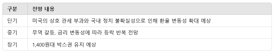 - 미국 상호 관세 부과와 국내 정치 불확실성으로 환율 변동성 확대 예상