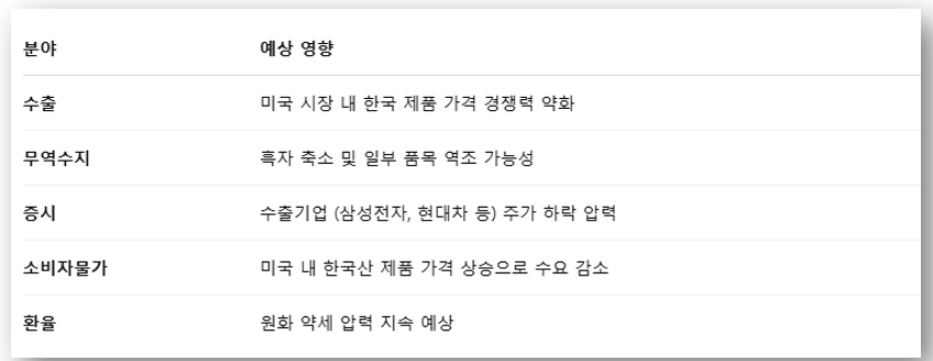 이번 관세 폭탄으로 예상되는 영향은 다음과 같습니다.