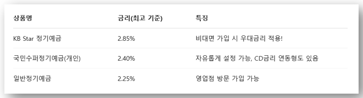오늘은 2025년 4월 기준 국민은행(KB국민은행) 예금상품 금리 비교를 해보았는데요,