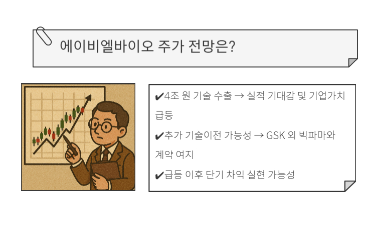 2025년 4월 5일, 에이비엘바이오는 영국의 글로벌 제약사 GSK(글락소스미스클라인)와 뇌혈관장벽(BBB) 셔틀 플랫폼 'Grabody-B' 기술을 이전하는 계약을 체결했다고 공시했습니다.