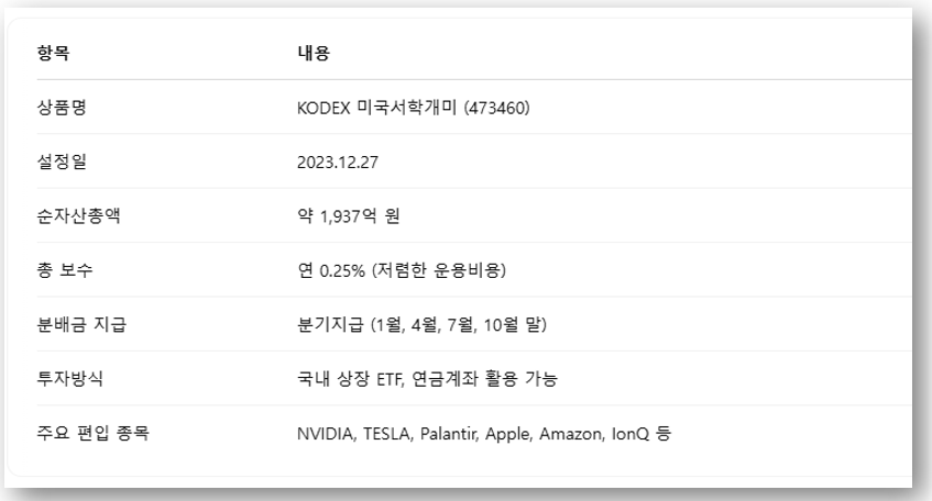 1. Kodex 미국서학개미 ETF 핵심 요약