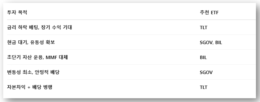 TLT, SGOV, BIL은 단순한 채권 ETF가 아닙니다.