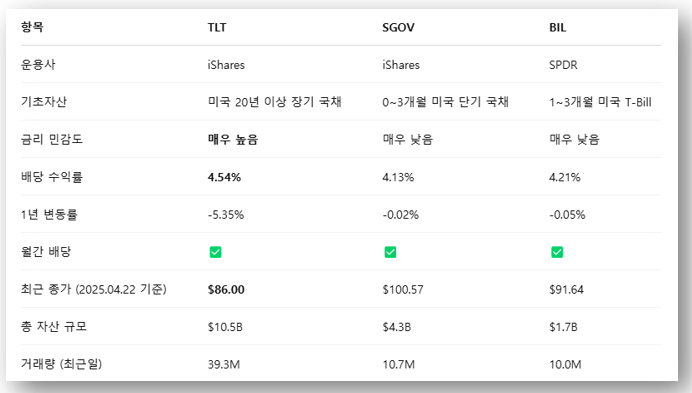 2. TLT, SGOV, BIL 한눈에 비교