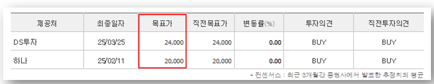✅목표 주가 평균: 20,000원~22,000원