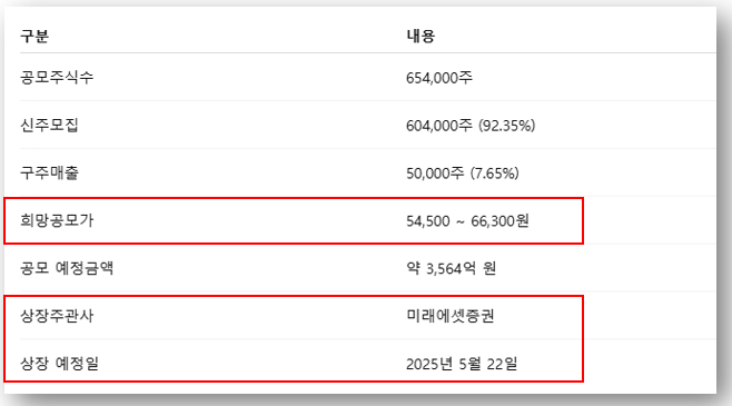 - 청약 최소 단위: 8,000주 ~ 9,500주 범위(비례배정 포함)