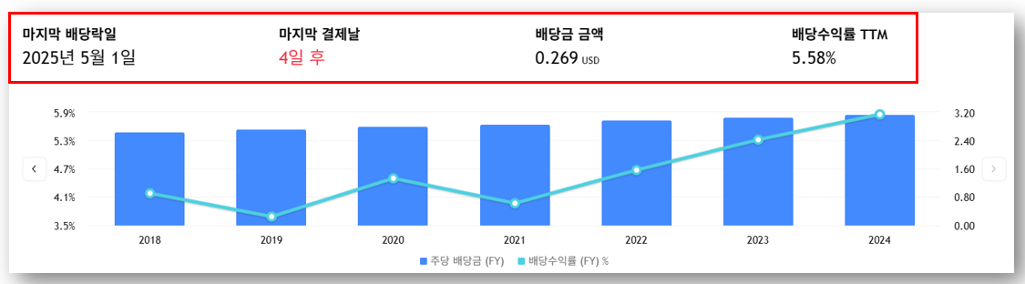 - TTM 기준 배당수익률: 5.58%