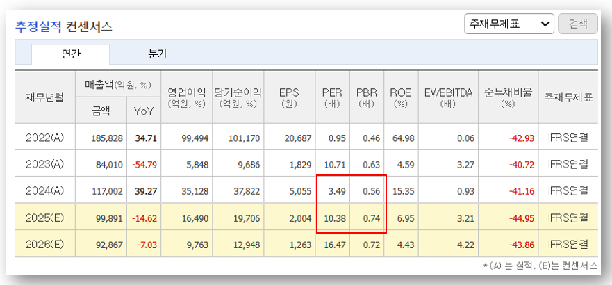 - PER(2024): 4.11배 → 2025 추정 PER은 10.38배로 상승 전망