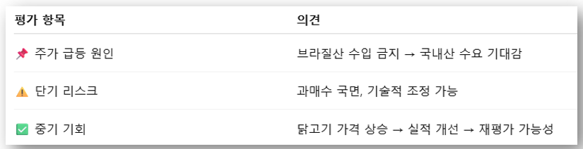 → 국내산 닭고기 수요 급증 + 가격 상승 기대
