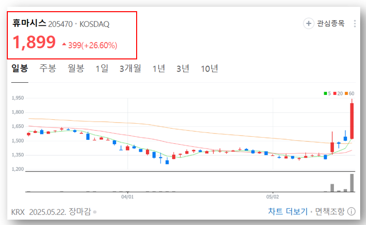 ✅ 휴마시스 주가 급등 이유 요약