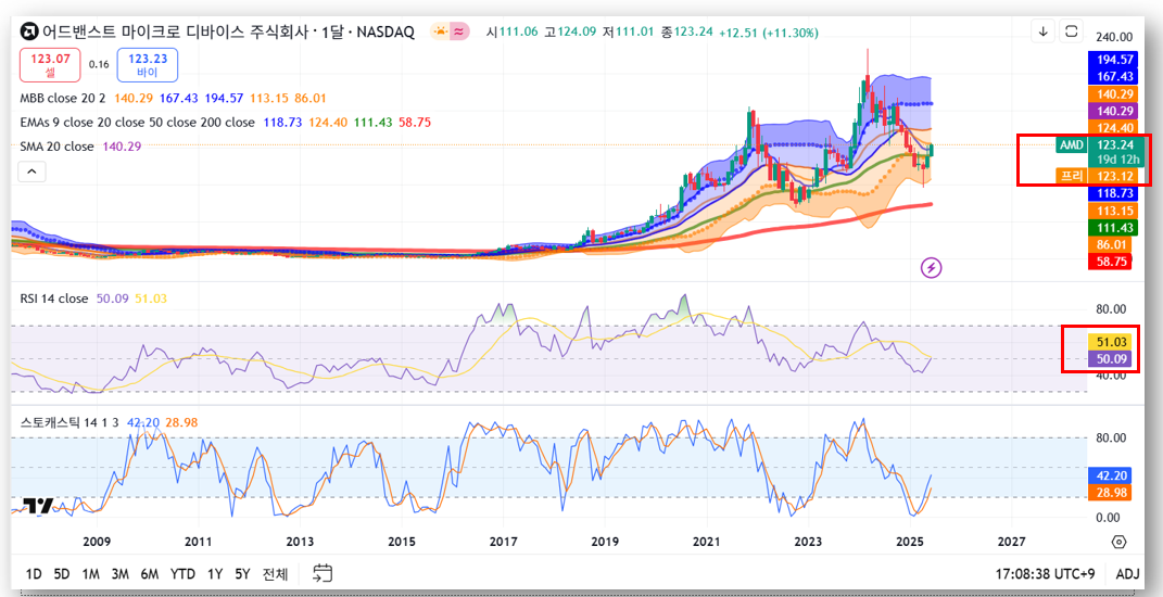AMD를 월봉·주봉·일봉 기술적 분석과 함께, 최근 미국-중국 무역 호재까지 종합 분석해보겠습니다.