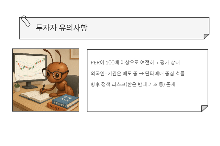 - 외국인·기관은 매도 중 → 단타매매 중심 흐름