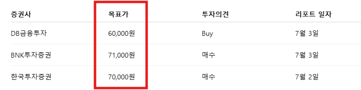 - 평균 목표주가: 약 67,000원 내외