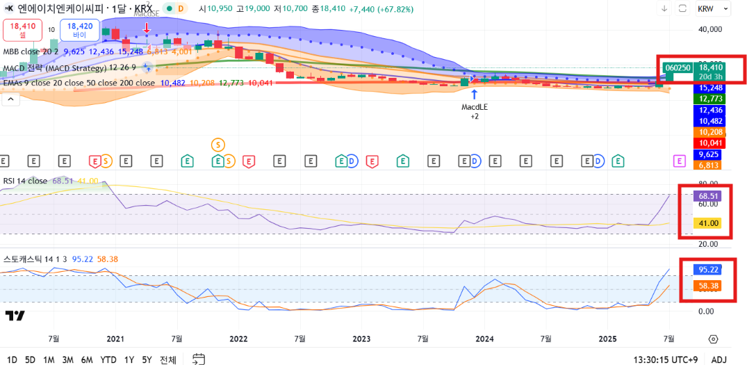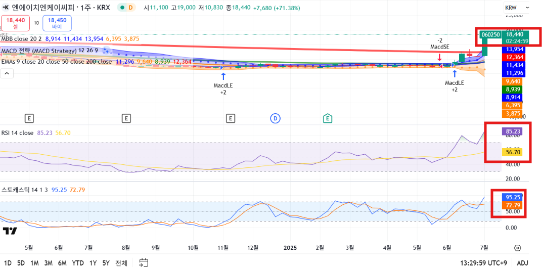 NHN KCP는 단기 급등으로 인한 과매수 구간에 진입했으나, 스테이블코인 관련 대장주로 재평가받으며 추가적인 기대감이 남아 있습니다.