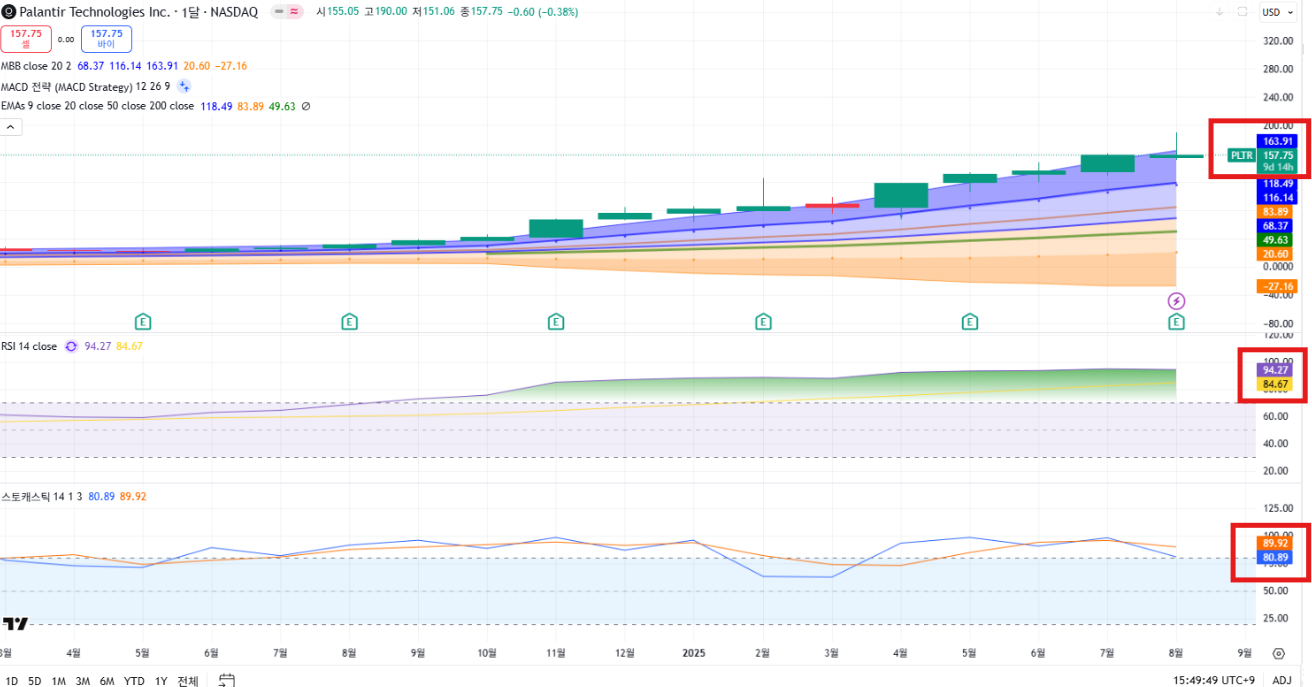 - 월봉: RSI 94, 장기적으로는 과매수권 유지 → 밸류 부담 여전