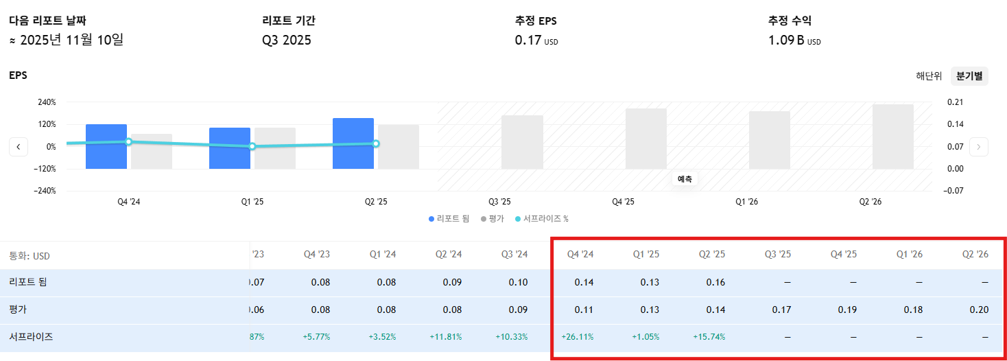 • Q2 2025 매출: 10억 달러 (YoY +20%)