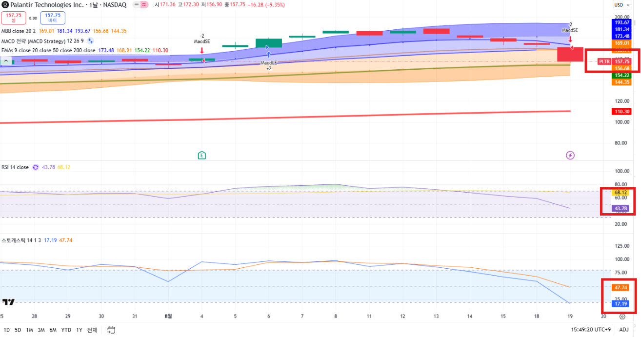 팔란티어의 지지선인 150달러에서 매수세가 유입되어서 반등을 할지가 관건이에요!