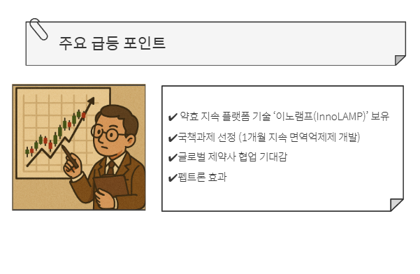 지투지바이오의 주가 급등은 단순한 테마성 움직임이 아니라, 핵심 기술력 + 정부 국책과제 선정 + 글로벌 협업 기대감이 맞물린 결과로 풀이됩니다.
