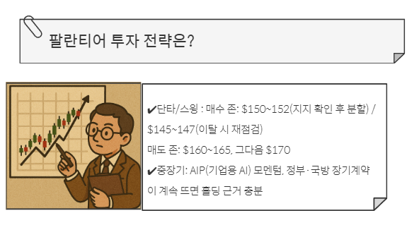 - AIP(기업용 AI) 모멘텀, 정부·국방 장기계약이 계속 뜨면 홀딩 근거 충분