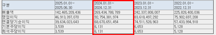 - 2024년 매출 2,695억 원, 영업이익 598억 원