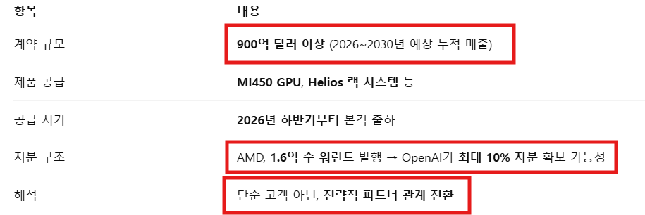 - AMD는 이번 계약을 통해 AI 인프라 핵심 공급자로 격상