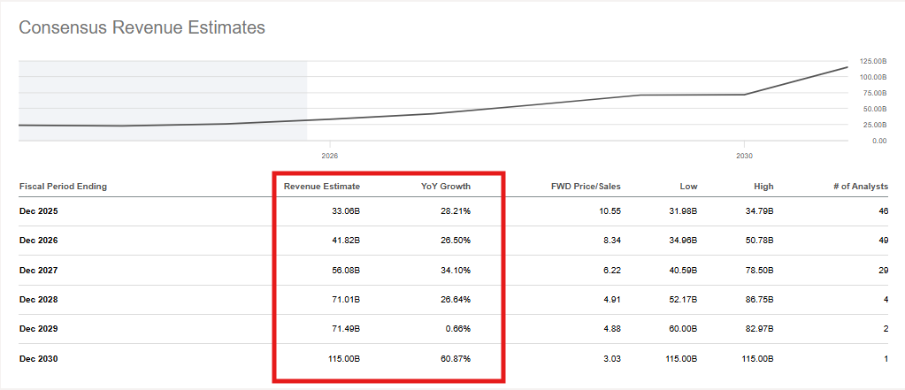 ✅ 앞으로 5년 동안, EPS는 약 5.6배, 매출은 3배 이상 성장 예상됩니다.