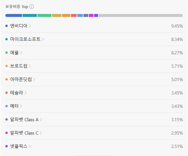 애플, 마이크로소프트, 엔비디아, 아마존, 메타, 테슬라, 알파벳(구글)