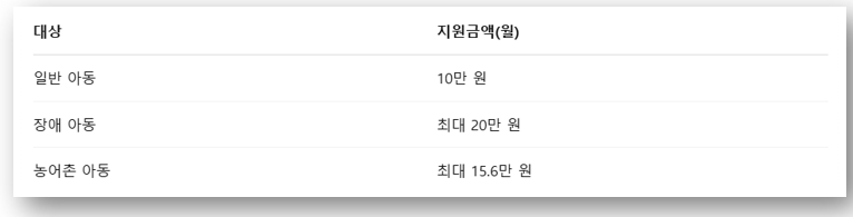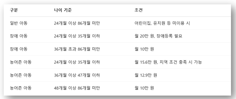 4. 가정양육수당 지원 금액 요약