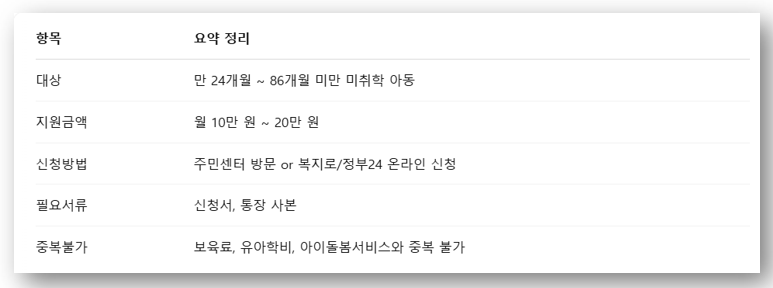 ⚠️ 부모급여와 중복 불가: